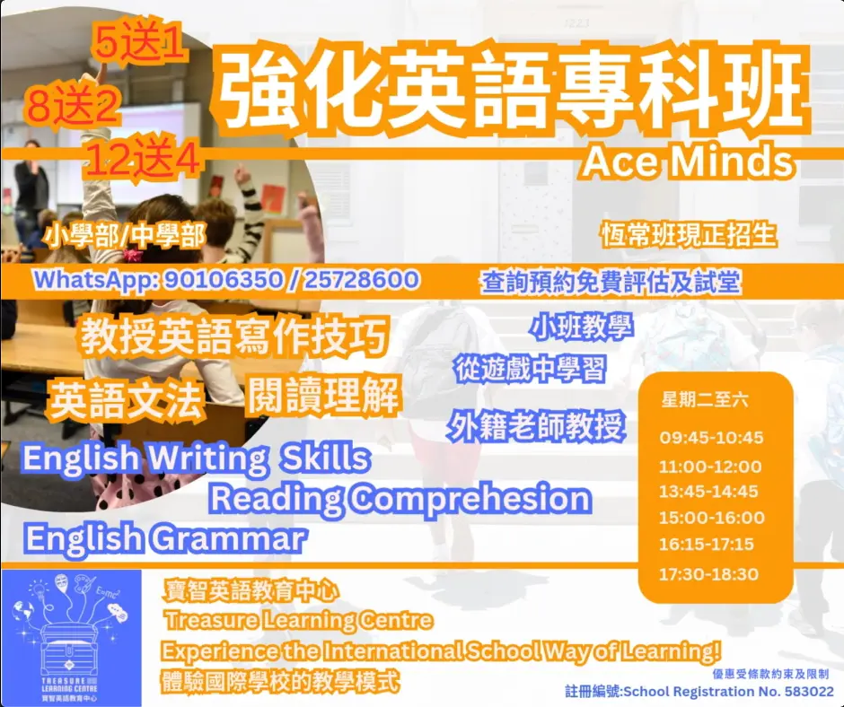 - 小學及高中英語:通過量身定制的課程,提升閱讀、寫作和口語技能。